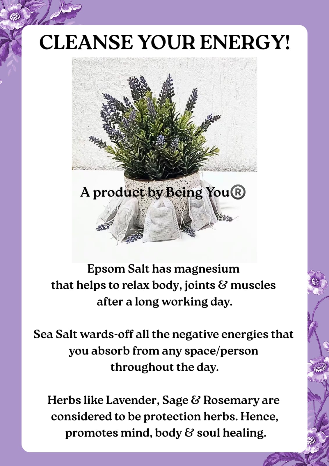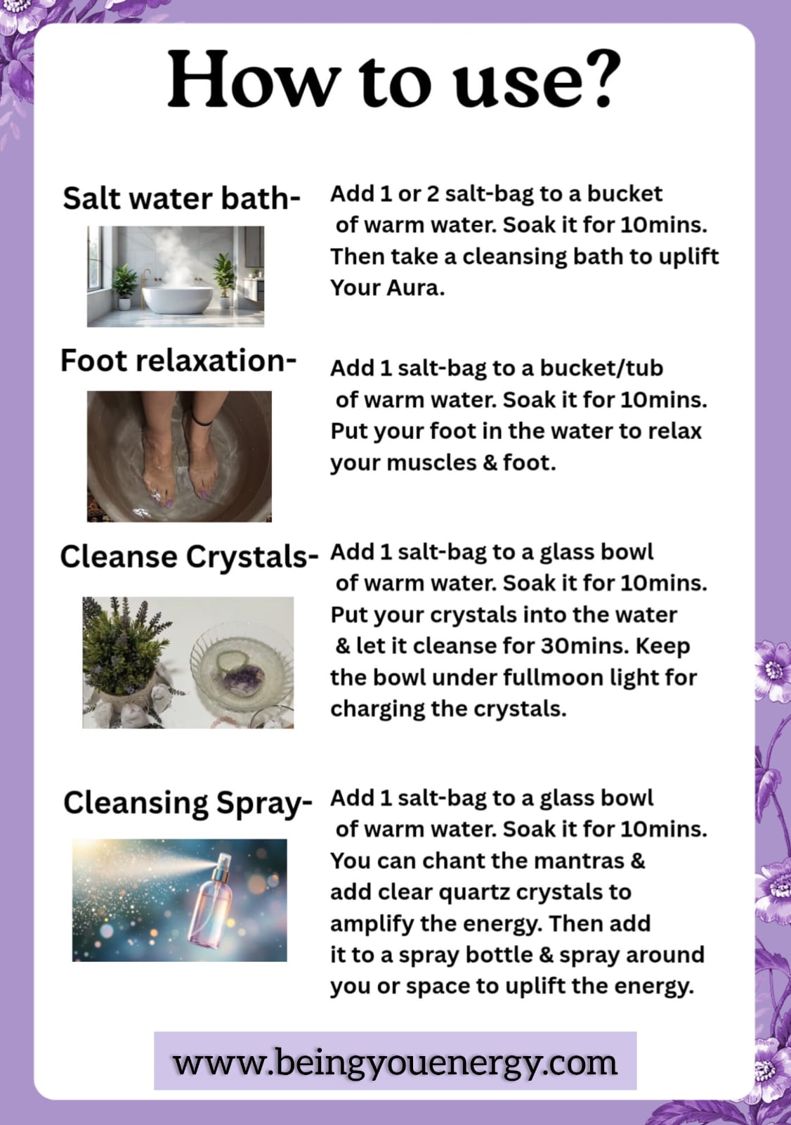 Use Aura Cleansing Bath Salt-bag to uplift your energy.